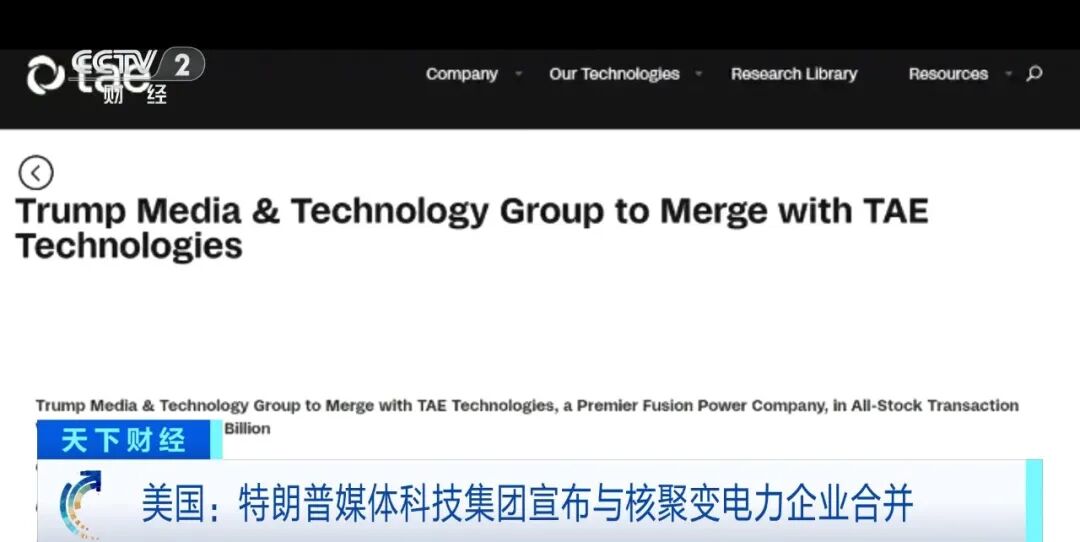据央视财经,在人工智能算力需求呈现爆发式增长的背景之下,不少公司开始押注AI能源赛道。当地时间2025年12月18日,美国总统特朗普旗下的特朗普媒体科技集团和美国核聚变电力企业TAE技术公司联合发布公告,宣布两家企业已经签订约束性合并协议,交易估值超过60亿美元,约合人民币420亿元以上。消息传出之后,特朗普媒体科技集团股价当天上涨超过40%。